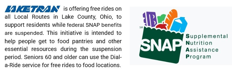 Laketran provides free rides on all local routes to support residents during SNAP suspension.