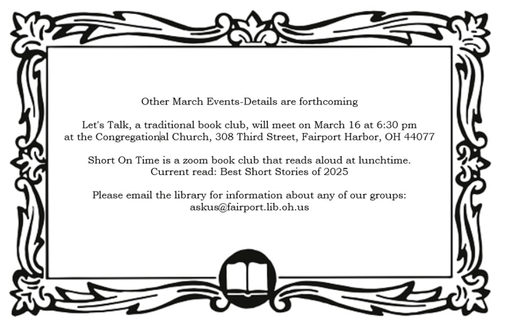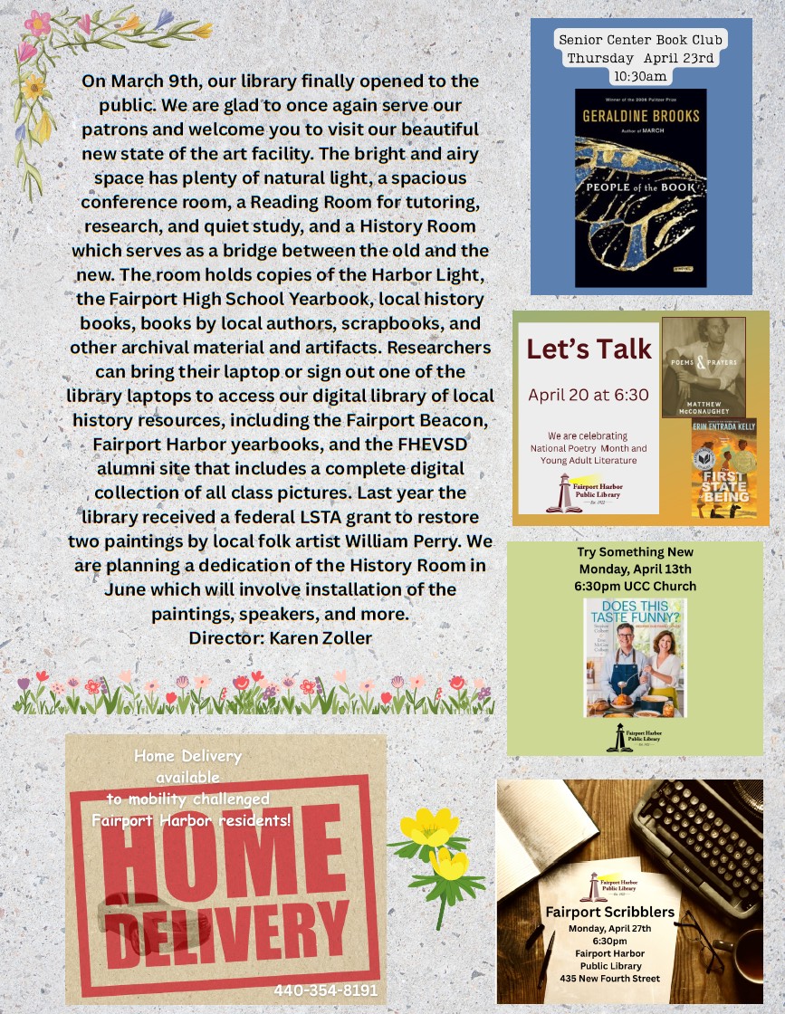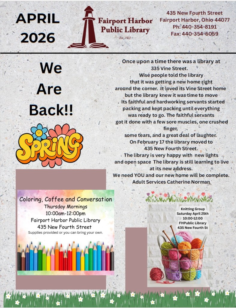 Get the latest about Fairport Harbor Public Library’s events, services, and other news delivered right to your inbox. Sign up to receive news and updates in your email
